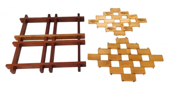 • Lote composto por 3 aparadores de panela em madeira - 02x24x24 cm o maior - e 16x24cmosmenores.