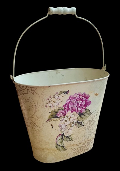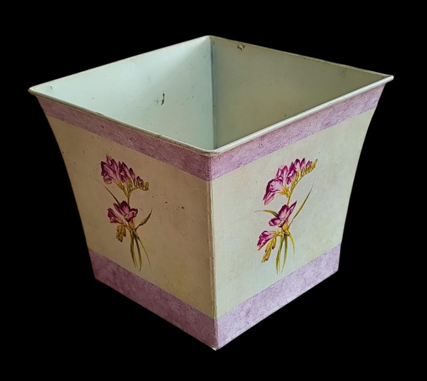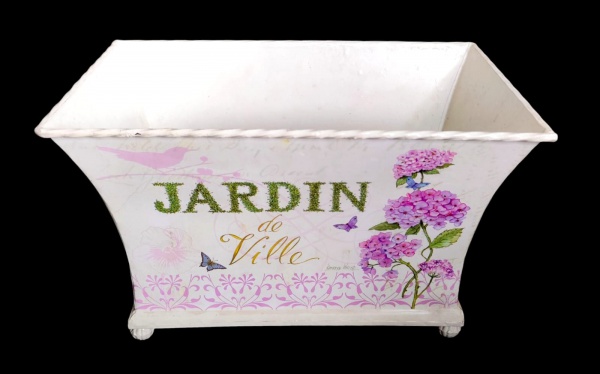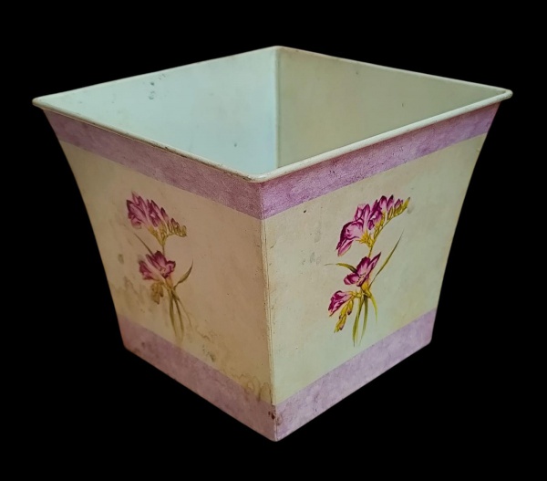 • Floreira em metal pintado revestido com papel contact 23x36x22 cm - com poucos desgastes na pintura.