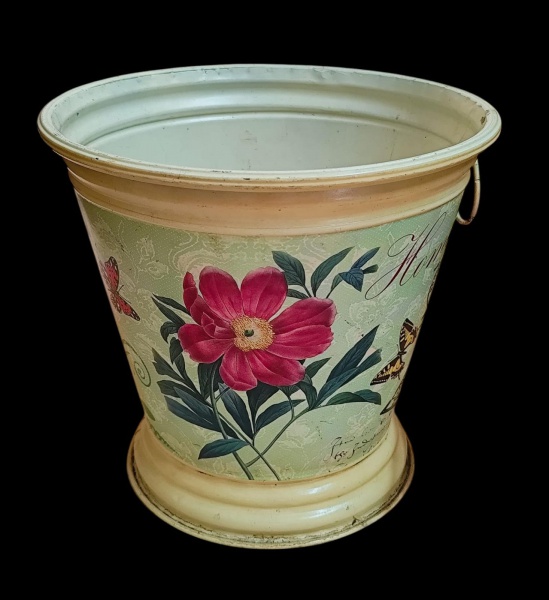 • Cachepô em metal revestido com papel contact - 24x26 cm - com desgastesnopapel.