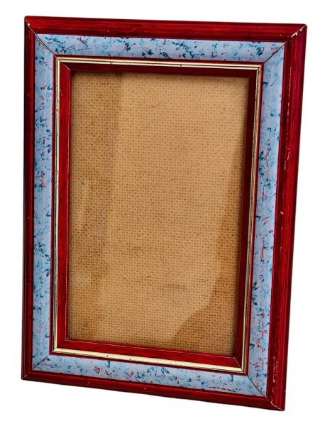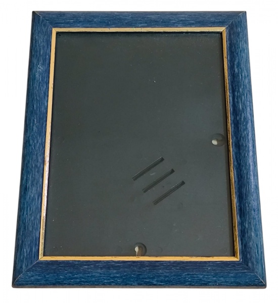 • Porta retrato em madeira pintada e vidro - 18x13 cm - e 14x09 cm a foto - com riscos na moldura.