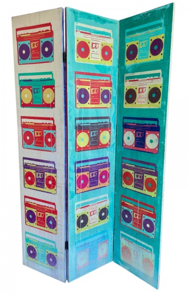 • Biombo retrô vintage em tela pintada composto por 3 folhas articuláveis - 180x120x02 cm medidas gerais - com 2 furos na tela em um dos lados, necessitando repintura, tela levemente desgastadas nas pontas.