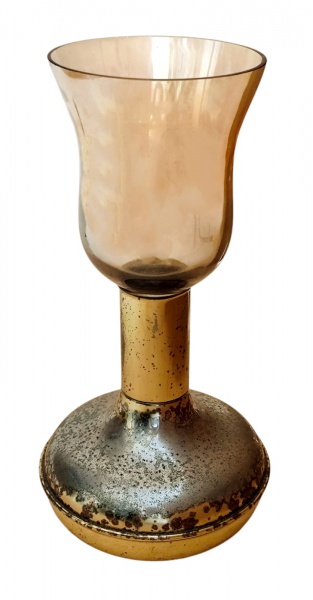 • Castiçal em vidro colorido com base em metal - 31x16 cm - faltando uma lasca nabasedovidro.