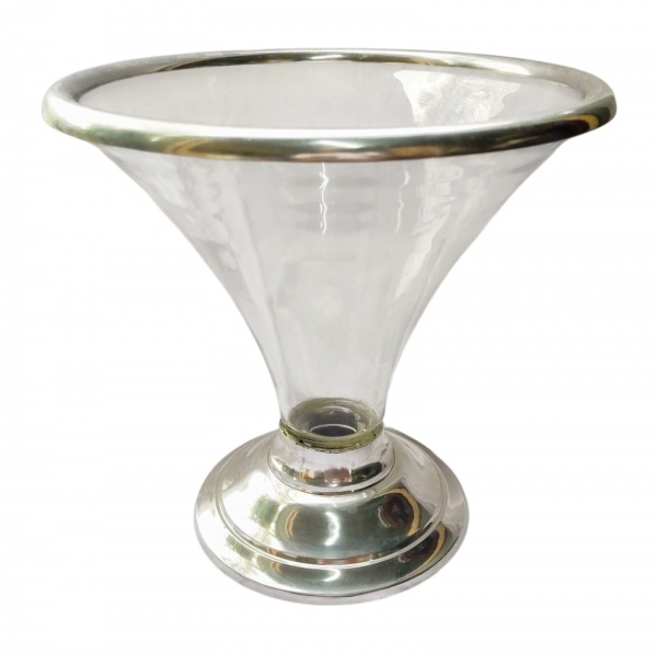• Grande vaso em vidro pintado com base em estanho polido - 55x13 cm - com desgastesnapintura.