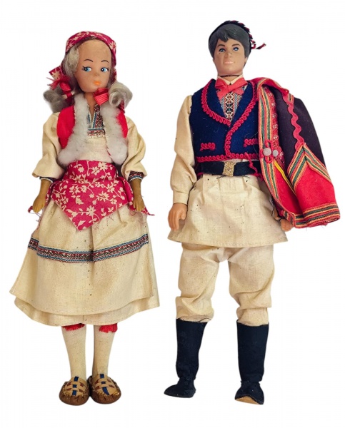 • Casal de bonecos holandeses em material emborrachado e tecido - 30x09x05 cm - amarelados pela ação do tempo e saia com alguns desfiados.