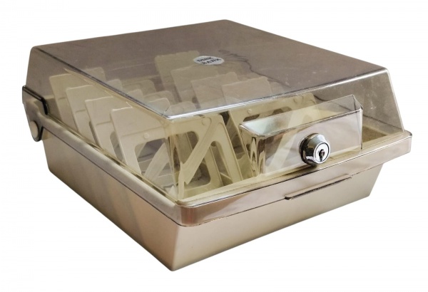 • Caixa organizadora de disquete em acrílico - 11x22x24 cm - não acompanha chave - com riscos do uso e faltando duas divisórias.