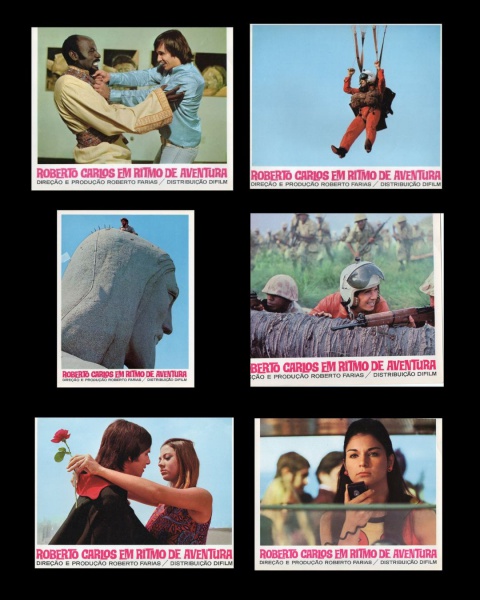 • cinema - Roberto Carlos em Ritmo de Aventura - Roberto Carlos, José Lewgoy eReginaldo Faria - lote com 6 lobby card coloridos - 1968 - dirigido por Roberto Farias - em ótimo estado de conservação - versos em branco - média (22x26)cm.