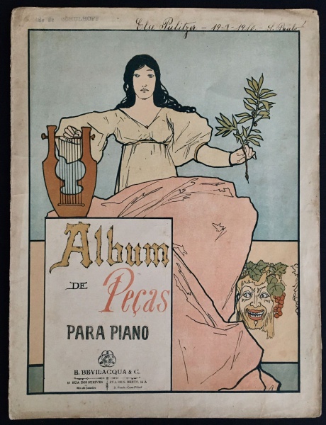 • partitura - Album de Peças para piano - Sérénade - J. Schulhoff - Edição Bevilacqua - 4p . - papel amarelado pelo tempo - no alto da capa nome e datado 19-8-1910 - folhas soltas - (35x26,5)cm.