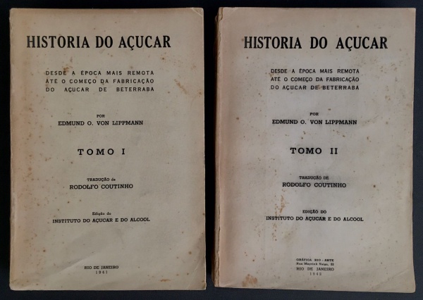 • livro - Historia do Açucar: desde a época mais remote até o começo da fabricação do açucar de beterraba - Edmund O. von Lippmann - Rodolfo Coutinho (tradução) - Instituto do Açucar e do Alcool -  2 volumes - 1941/42 - (466=440) p. - brochura com marcas do tempo nas capas - miolo levemente amarelado - (23x16) cm.