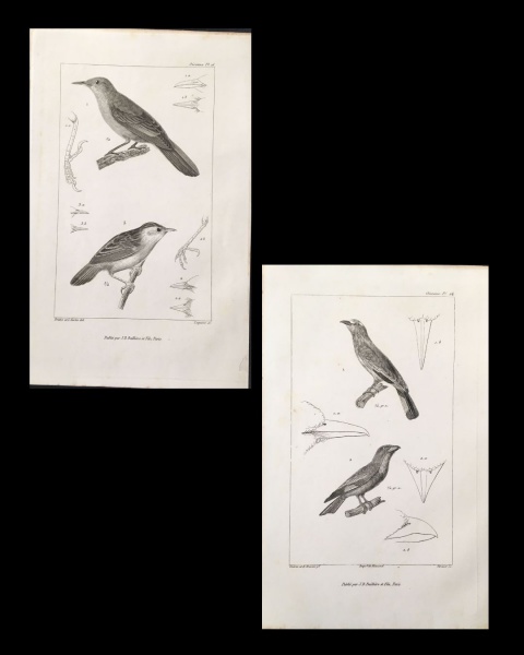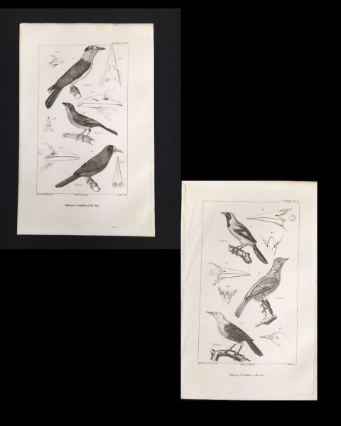 • gravura - Passáros (2)  - Pretre et L. Gerbe del. - Publié par J. B. Bailliére et Fils - Lagesse sc. - gravura original da obra `Les Oiseaux` de George Cuvier - com marcas do tempo - (23x14,5) cm.