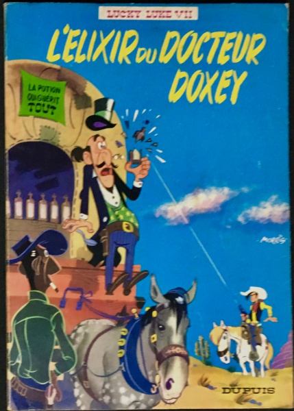 • HQ - Lucky Luke - LÉlixir du Docteur  Doxey - vol. 7 - texte e illustrations de Morris - Dupuis - 1980 - idioma francês - 48 p. - brochura capa e miolo em bom estado de conservação - apenas paquena marca de umidade na borda inferior - (29x20,5)cm.
