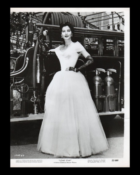 • fotografia - Ava Gardner (1922-1990) - atriz e cantora norte-americana - fotografia original - still do filme  Lone Star em 1951 -  em bom estado de conservação, pequeno rasgo na parte inferior da margem direita - verso em branco - (26x20,5)cm.