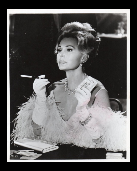 • fotografia - Zsa Zsa Gabor (1917-2016) - uma atriz húngara-estadunidense - fotografia original - still do filme `Arrivederci, Baby!`(1966) - em ótimo estado de conservação - verso com nome e data anotado - (25,5x20,5)cm.