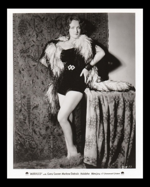 • fotografia - Marlene Dietrich (1901-1992) - atriz e cantora alemã-americana - fotografia original - still do filme Marrocos em 1930 - em ótimo estado de conservação - verso com carimbo - (25,5x20,5)cm.