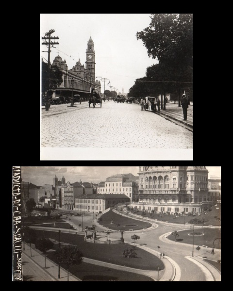 • fotografia - São Paulo - lote com 2 fotos - 1- Estação da Luz - 1917 Guilherme Santos famoso por suas estereoscópicos - (11,5x12)cm. - 2- Viaducto do Chá - mar 1918 - (8,5x14,5)cm. - informações manuscritas no verso - em bom estado de conservação.