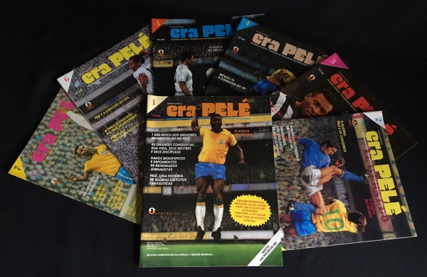 • revista - Era Pelé: O Atleta do Século - Domicio Pinheiro - Sociedade Editorial Seqüência - 1984 -  7 fascículos sequenciais - bilígue port./inglês - excelente estado de conservação - (28,5X21,5) cm.