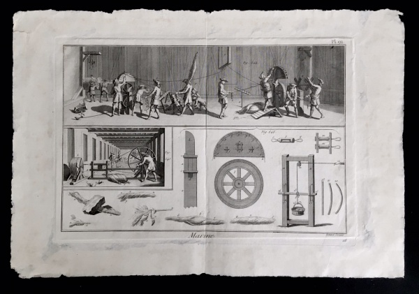 • gravura - Marine - pertence a obra "Encyclopédie Méthodique. Marine. Paris, Panckoucke, 1783-1787. 4 vol. " - Pl 91 - Bernard direxit - imagem (22X33,5) cm. - com as margens (31,7X45,6) cm. - papel levemente amarelado com algumas manchas - bordas irregulares.