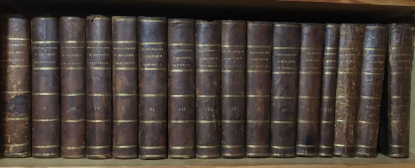 • livro - Dictionnaire Universel DHistoire Naturelle (Dicionário Universal de História Natural) - M. C.DOrbigny - Éditeurs L. Houssiaux - 1861 - idioma francês - 16 volumes sendo 13 de texto e 3 atlas com gravuras em aço num total de 288 gravuras -OBRA RARA E COMPLETA - em torno de 700 p. por volume - encadernação com dorso em couro danificado pelo tempo - miolo amarelado - (25X16,5) cm cada volume.