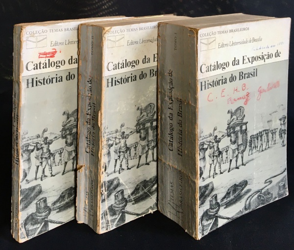• livro - Catálogo da Exposição de História do Brasil - Biblioteca Nacional do Rio de Janeiro - Coleção Temas Brasileiros 10 - 1981 - 3 volumes com numeração sequencial 1758 p. - brochura com as capas e lombadas danificadas pelo tempo - miolo amarelado - anotação de antigo dona nas capas e em diversas paginas - (22,5X16) cm.