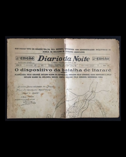 • jornal - Revolução de 30 - Diario da Noite - anno VI - 28 de outubro de 1930 - nº 1769 - 2º edição - Oswaldo Chateaubriand(director) - 6 p. - papel amarelado e quebradiço - marcas de dobras (56,5x40,5)cm.