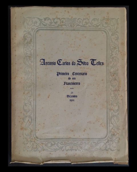 • livro - Antonio Carlos da Silva Telles: Primeiro Centenário do seu Nascimento - vários autores - Elvino Pocai - 1944 - 84 p. - brochura com pontos de oxidação na e as bordas danificadas - parte interna levemente amarelada - (32x23,5)cm.