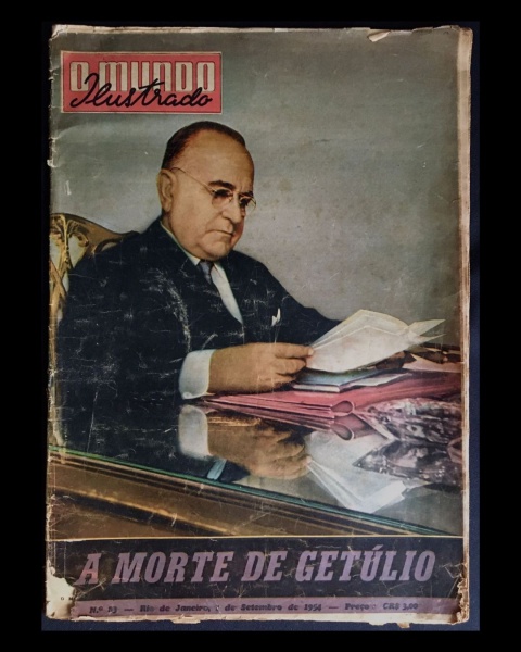 • revista - O Mundo Ilustrado: A Morte de Getúlio - ano II - nº 83 - Rio 1-9-1954 - O Mundo Gráfica e Editora - 47 p. - brochura com a capa solta e as bordas danificadas - miolo amarelado - (38x26,5)cm.
